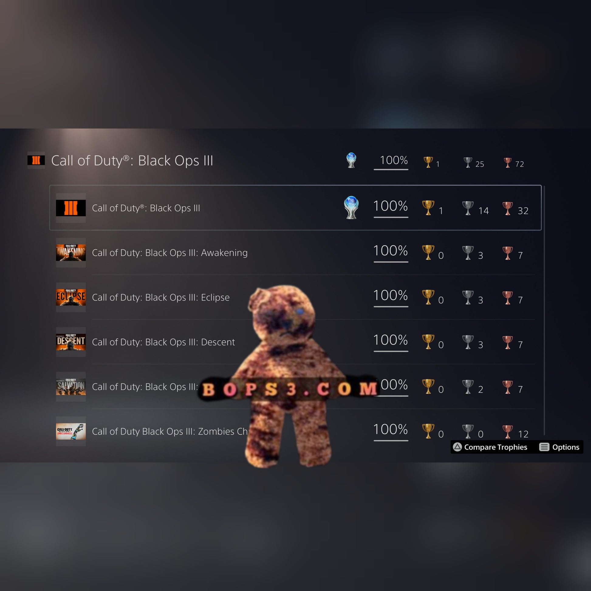 Black Ops 2 can be unlocked 100% but platinum will not show unless you load in a game.The Last Of Us is only 59% completed.Follow avatar/Level 999 Platinum unlock instructions for Ps3 Trophies only! |